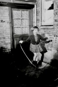 Jeg var nem at lokke til gale streger af de lidt større drenge Ib Kruse bla.stod ude på gaden med en luftbøsse og fik mig til at skyde mod udhusdøren (den på billedet) skød så hul i ruden 🙄 Så var det tid for Mor at få fat i tæppebankeren 🥴